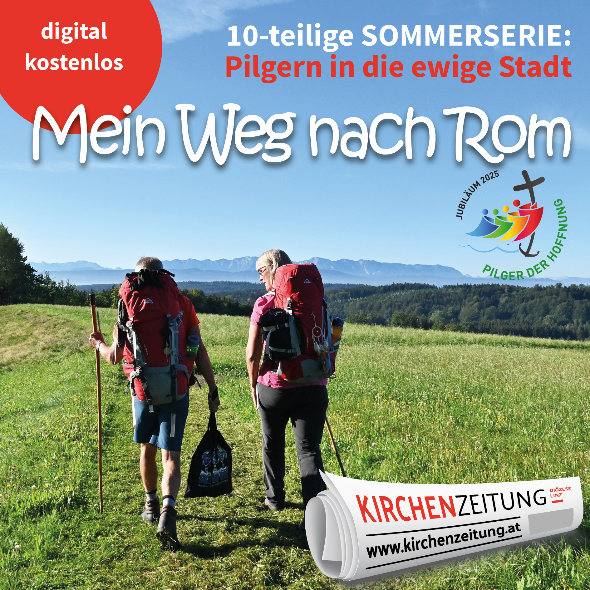 Da diese Serie an und für sich kostenpflichtig ist, sind die Artikel auf der Homepage nicht frei zugänglich. Um die "Sommerserie - Mein Weg nach Rom" lesen zu können, brauchen Sie Zugangsdaten. Deshalb bitten wir Sie bei Interesse, uns Ihre E-Mail-Adresse bekanntzugeben. Sie bekommen dann die Zugangsdaten ab 4. Juli 2025 mit Beginn der Serie per E-Mail zugeschickt und werden für den Zeitraum der Serie (bis KW 35) freigeschalten. So erhalten Sie Woche für Woche eine Pilgeretappe am "Weg nach Rom". Nach Ablauf der Serie endet der freie Zugang automatisch.