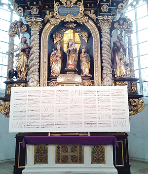 Gemeinsam mit Manfred Pohn, einem Künstler aus der Pfarre , gestaltete der Liturgiekreis der Pfarre Zell am Pettenfirst ein großes Fastentuch.