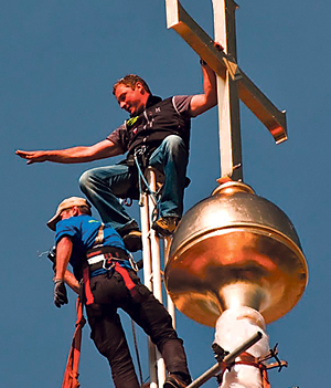 Eferding: 285 m² Dachfläche, 2000 kg Kupferblech, 36.000 Nägel, 4900 Schrauben. Das sind die Eckdaten der Kirchturmrenovierung. Für Pfarrgemeinderatsobfrau Herta Gruber ist der neue Turm deutlich mehr: ein Symbol der Selbst- und Gottfindung.