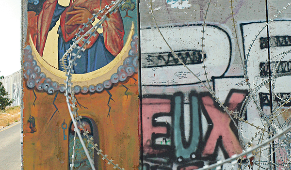 An der acht Meter hohen Betonmauer, die das israelische Jerusalem vom palästinensischen Bethlehem trennt, haben auf der Bethlehemer Seite Sprayer und Graffitikünstler ganze Arbeit geleistet. Die Betonwand ist übervoll mit Slogans und Karikaturen. Ein besonderes Werk hat der englische Ikonenmaler Ian Knowles hinterlassen: Die Gottesmutter thront über einer Mauer, die Sprünge zeigt und ein Tor hat, das den Blick auf Jerusalem freigibt. Es ist ein Hoffnungsbild – gegen die Realität. Denn nur wenige der rund 80.000 Bewohner der Region Bethlehem dürfen auf die andere Seite der Mauer. Die Menschen haben dieser Mariendarstellung einen Namen gegeben: „Unsere liebe Frau, die die Mauern niederriss“. In dem dazu verfassten Gebet heißt es: „Heilige Muttergottes, wir rufen dich an als Mutter der Kirche, Mutter aller Christen, die leiden. Wir flehen dich an, durch deine brennende Fürbitte diese Mauer, die Mauern in unserem Herzen und alle Mauern, die Hass, Gewalt, Angst und Gleichgültigkeit zwischen Menschen und Völkern hervorbringen, zu Fall zu bringen. (...) Beschütze uns vor allem Unheil und öffne in unserem Leben für immer die Tür der Hoffnung. Stärke uns und diese Welt, stärke die Kultur der Liebe, die aus dem Kreuz und der Auferstehung deines göttlichen Sohnes kommt, Jesus Christus, der lebt und herrscht in alle Ewigkeit“.