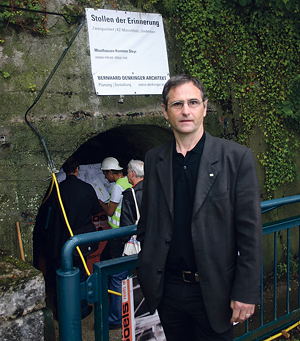 Zwangsarbeit. Ramsmaier erinnert an das Schicksal der Zwangsarbeiter beim Stollenbau. Sie hatten neun Stunden harte Arbeit bei schlechter Ausrüstung und Kleidung zu verrichten. Im Stollen ist die Temperatur immer etwa bei 13 Grad. Und es ist feucht.