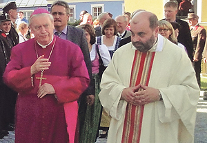 Weitersfelden. Bischof Ludwig Schwarz segnete kürzlich den neu gestalteten Kirchenplatz und das von der Dombauhütte Linz sanierte gotische Hauptportal der Pfarrkirche Weitersfelden, die dem hl. Ulrich geweiht ist. Pfarrgemeinderats-Obmann Fritz Hennerbichler bedankte sich bei allen Helfern, dass sie den Kostenvoranschlag von 320.000 Euro auf voraussichtliche Baukosten von 270.000 Euro senken konnten. Mit einem Pfarrfest und einem Fußball-Freundschaftsspiel Pfarrgemeinderat gegen Gemeinderat der Marktgemeinde Weitersfelden bzw. einem Volleyballspiel klang dieses Pfarrfest aus.