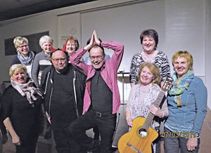 Ein Highlight der Veranstaltung war der Kabarettabend mit Günther Lainer (4. von links) und Ernst Aigner, der sich gerade in Yoga übt. Mit ihrem Programm „Frühling, Sommer, Ernst und Günther“ sorgten sie für einen unvergesslichen Abend. Zu Gast bei den Pfarrsekretärinnen war auch Bischof Manfred Scheuer. Er gab einen spirituellen Impuls „Auf dem Weg nach Ostern“.