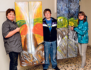 Firmlinge aus Spital malten mit der Künstlerin Waltraud Gösweiner zwei großformatige Bilder zum Thema „Karfreitag“ und „Auferstehung“. Die Arbeiten der Jugendlichen sind in der Pfarrkirche zu sehen.