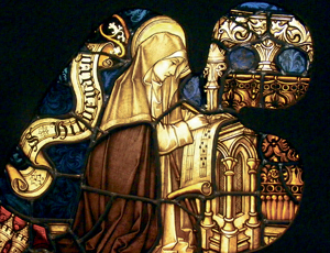 Eines der Bilder, die Hildegard findet, um ihren Verkündigungsauftrag zu beschreiben, ist das von der Posaune. Sie erzählt davon zu einer Zeit, in der sie schon weithin bekannt ist und sagt: „Ich bin wie eine Posaune. Ich töne, aber ein anderer bläst in mich hinein.“ Ein andermal nennt sie sich einen schwachen Posaunenton des lebendigen Lichtes. Von dieser Sichtweise können wir lernen. So wie jeder Heilige seine Farbe zum reinen, weißen, klaren Licht Gottes beisteuert, so ist jeder und jede Einzelne eine unverzichtbare Melodie in der großen Symphonie der Schöpfung. Nehmt Gottes Melodie in euch auf. Wer glaubt, ist nie allein. Wer die Lieder Hildegards richtig verstehen will, kann das nur auf dem Weg des Glaubens tun. Als ich vor Jahren meine Doktorarbeit über die Gesänge schrieb, war dieser Zugang noch umstritten. Aber es zeigt sich, dass viele Fragen nur auf diesem Wege beantwortet werden können. Erst im Wissen, was das Gotteslob für eine Benediktinerin bedeutet, eröffnet sich das Ganze.