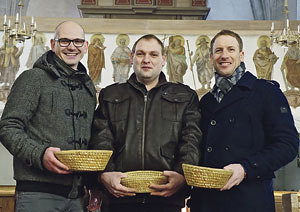 Christian Beham, der im vergangenen Sommer geheiratet hat, ist einer von drei Männern, die sich 2017 als Zechpropst zur Verfügung stellten. „Ich bin beruflich sehr eingespannt und da haben viele in der Pfarre nicht geglaubt, dass ich das mache“, erzählt Christian Beham. Ihm war es aber wichtig und er hat Freude am Dienst, wie er betont. Jedes Wochenende ist der technische Angestellte im Einsatz, entweder am Samstag Abend oder am Sonntag. Dann geht er mit dem Körberl durch die Bankreihen und sagt „Vergelt’s Gott“ zu jedem, der es klingeln lässt. 50 bis 100 Euro landen pro Messe in Behams Körberl, schätzt er. Nachzählen tun aber andere. Für die Zechpröpste ist es eine gesellige Sache, sie kommen dadurch nach der Messe und dem Dienst zum Frühschoppen auf ein Bier zusammen. Sie bringen sich so auch in die pfarrliche Gemeinschaft ein und werden in einige Hilfsdienste miteingebunden: Diese reichen von Birkenschneiden zu Fronleichnam bis zum Christbäumeholen. Außerdem tragen die Zechpröpste das Kreuz bei den traditionellen Pfarrwallfahrten nach Maria Schmolln und St. Wolfgang. Für die Frauen der Zechpröpste ist übrigens auch eine Aufgabe vorgesehen: Sie tragen nach altem Brauch bei den Prozessionen die Frauenfahne.