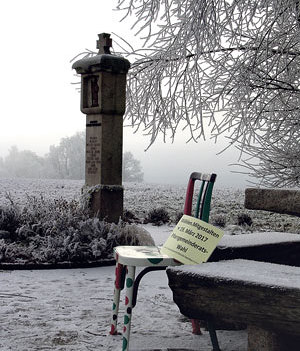 Drei Sessel sind mit Fragezeichen und mit der Einladung beschriftet, Platz zu nehmen und sie auszuprobieren. Die Stühle sind in Wald und Wiese verteilt und dienen einem Spiel. Die Koordinaten der Verstecke haben die Sternsinger Anfang Jänner zu den Leuten gebracht, damit sich die Offenhausener auf Geocaching-Suche begeben können. Wer fündig geworden ist, kann sich auf dem Stuhl fotografieren lassen und an dem Fotowettbewerb unter dem Titel „Nimm Platz“ teilnehmen. Ab Mitte Februar werden zehn weitere Stühle zum Einsatz kommen. Sie werden mit Foto und Namen der Kandidat/innen versehen und an frequentierten Plätzen im Ort aufgestellt. Nach der Wahl am 19. März werden die Sessel über die gewählten Kandidat/innen informieren. Zum krönenden Abschluss werden sie nach Ostern versteigert werden. Das daraus eingenomme Geld wird in die Innenrenovierung der Offenhausener Pfarrkirche fließen. «