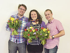 Wiedergewählt sind Jakob Haijes (23, rechts im Bild) aus Kirchdorf und Georg Muggenhuber (27) aus Krenglbach. Die 22-jährige Lehramtsstudentin Marie Mayrhofer komplettiert als Neuzugang das Vorsitztrio.