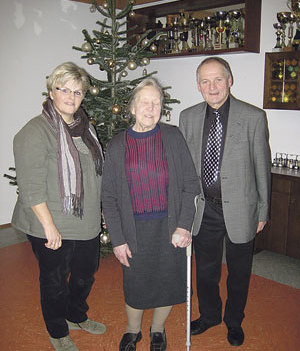 Frankenburg. Hedwig Breiner (Mitte), langjährige und treue Sängerin des Kirchenchores Frankenburg, feierte kürzlich in guter Gesundheit ihren 90.Geburtstag. Maria Seifriedsberger mit dem Kirchenchor und Pfarrer Sallaberger gratulierten der Jubliarin.