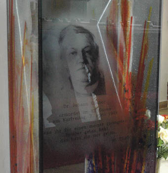 Grieskirchen. Am Karfreitag des Jahres 1944 starb – vom Lagerkommandanten zu Tode gequält – im KZ Gusen der Priester Johann Gruber. Da Dutzende Mithäftlinge seiner Fähigkeit, zusätzlich Nahrung zu besorgen, ihr Leben verdanken, nannten sie ihn „Papa“ Gruber. Johann Gruber (geboren 1889) stammt aus Grieskirchen, in der Pfarrkirche wurde er getauft und feierte in ihr seine Primiz. Die Pfarre beauftragte 2009 die Künstlerin Maria Moser, die für ihre Glasfenster in Linz-St. Konrad und Grieskirchen bekannt ist, einen Gedenkort (siehe Bild) in der Pfarrkirche zu gestalten. Die Stele aus färbigem Glas zeigt ein Porträt Grubers. Das Bibelwort aus dem Matthäusevangelium: „Was ihr für einen meiner geringsten Brüder getan habt ...“, deutet sein Leben aus der Pers–pektive des Glaubens. Grieskirchen gedenkt jährlich bei der Karfreitags-Liturgie des Leidens und Sterbens Jesu, aber auch des Leidens und Sterbens des Priesters Johann Gruber.