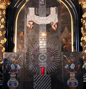 Nach und nach werden Heilige Gräber wieder aus den Abstellkammern hervorgeholt – ein besonders beeindruckend gearbeitetes Grab entriss die Pfarre Mondsee dem Vergessen (die KIZ berichtete in Nr. 11). Der Grabaufsatz ist nicht gemalt, sondern in Glasmosaiktechnik ausgeführt. Wenn die Bildelemente von hinten beleuchtet werden, strahlen sie in warmen Farben. Angefertigt wurde das Grab 1889 in Neustift bei Olmütz im Stil der Gablonzer Glasarbeiten.