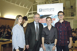 Ex-Vizekanzler Wilhelm Molterer (ÖVP) diskutierte mit Schüler/innen der Körnerschule in Linz über die Zukunft der EU.