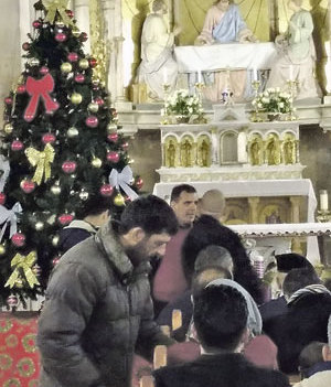 Nicht Pilger aus Europa, sondern die eigenen Bewohner von Emmaus-Qubeibeh füllten am 4. Adventsonntag 2016 das katholische Gotteshaus zur Illumination des Christbaums. Außer einem Dutzend Christen waren alle Kirchenbesucher Muslime.
