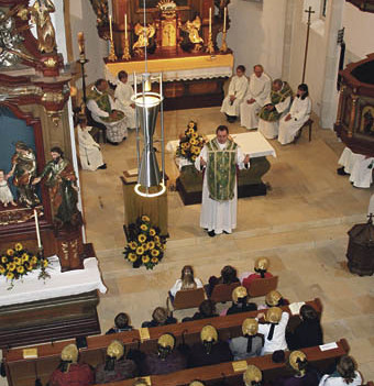 Die Arbeiten waren gekennzeichnet von der tatkräftigen Mithilfe und den großzügigen Spenden der Pfarrbevölkerung in der 750-Seelen-Gemeinde. „Für die große Unterstützung bin ich sehr dankbar. Das zeigt auch, dass die Bausteine der Kirche wir Menschen sind“, betont Pfarrassistent Mag. Fritz Klinglmair. Symbolisch wird das auch durch die besondere Gestaltung des Eingangsportals mit Glasbausteinen deutlich.