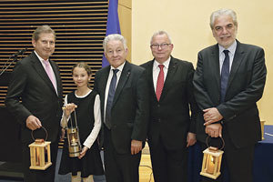 Den Frieden zu fördern, das sei Aufgabe jedes Einzelnen – und der zentrale politische Auftrag, der über allem anderen stehe, betonte Landeshauptmann Pühringer in Brüssel. An die Kommissare Christos Stylianides und Dr. Johannes Hahn wurde am 1. Dezember in Brüssel das Friedenslicht von Friedenslichtkind Melanie Walterer übergeben. „Dass der Friede keine Selbstverständlichkeit ist, hat das zu Ende gehende Jahr in schmerzlicher Weise gezeigt. Wir in Europa mussten erkennen, dass 70 Jahre Frieden zwischen den Nationen auf unserem Kontinent für die Menschen keine Garantie ist, nicht Opfer von Gewalt zu werden.“ Nicht nur der Terrorismus sei international, sondern auch das Bündnis der Freien und Friedfertigen, so Pühringer. Im Gespräch mit Christos Stylianides, der für humanitäre Hilfe und Krisenmanagement zuständig ist, bedankte sich Pühringer für das Engagement der europäischen Gemeinschaft in der Flüchtlingsfrage: „Man darf nicht übersehen, dass die EU mittlerweile rund acht Milliarden Euro in Syrien investiert hat.“ Mit Kommissar Dr. Johannes Hahn hat sich Pühringer für die Medizinerquote starkgemacht, die mit 2016 auslaufe. Sie besagt, dass derzeit 75 Prozent der Anfängerplätze beim Medizinstudium für Inhaber österreichischer Maturazeugnisse reserviert werden dürfen. „Jetzt geht es darum, dass diese Quote verlängert wird.“