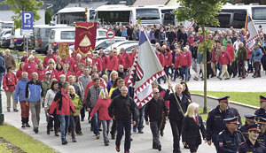 Die OÖ. Delegation mit Propst Johann Holzinger, Generalmajor Franz Gegenleitner und Oberst Michael Ahrer pilgerte vom Zellerrain über den Erlauf-Ursprung und vorbei am Erlaufsee knapp vierzehn Kilometer zur Basilika. Rund 500 Wallfahrer/innen aus ganz Österreich waren nach Mariazell gekommen.