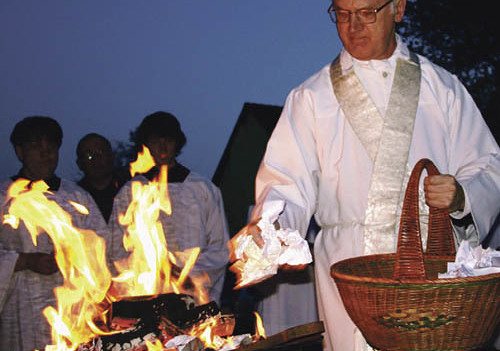 Attnang. Aus dem ganzen Bezirk sind am Karfreitag und Karsamstag Menschen in die Alt-Attnanger Martinskirche gekommen, um ein besonderes spirituelles Angebot zu nutzen: Sie schrieben ihre Bitten und Sorgen auf kleine Zettel und steckten diese in die Ritzen einer der Klagemauer von Jerusalem nachempfundenen Ziegelwand, die im Gotteshaus aufgebaut war. Bei der Osternachtsfeier wurden die Zettel im Osterfeuer verbrannt. Für Pfarrer Alois Freudenthaler ist die Geste der Sorgenverbrennung ein Zeichen der Hoffnung: „So wie der Tod durch Jesu Auferstehung besiegt wurde, dürfen wir auch darauf vertrauen, dass alles andere Belastende durch Gottes brennende Liebe zu uns Menschen von uns genommen wird!“