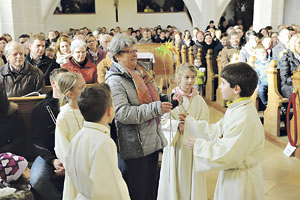 Noch immer wendet Maria Stoiber, die als Buchhalterin arbeitet, viel Zeit für die Vorbereitung der Gruppenstunden auf. 30 Kinder betreut sie jeden zweiten Samstagvormittag und trotzt der Konkurrenz von Fußballvereinen, Feuerwehr und Co. Die Kinder lernen, wie die Messe aufgebaut ist, basteln für wohltätige Zwecke und haben vor allem viel Spaß. „Bei mir können sie Spiele spielen, für die es viele Kinder braucht. Das geht bei denen zu Hause oft gar nicht mehr“, sagt Maria Stoiber, die Anfang Februar in Pension geht. Als Ministrantenleiterin möchte sie der Pfarre jedoch noch lange erhalten bleiben. Fad wird der dreifachen Oma somit sicher nicht werden. So ist sie etwa auch bei der Katholischen Frauenbewegung (kfb) engagiert. Dort sind gelegentlich Ministrantinnen gefragt, zum Beispiel bei der gemeinsamen Wallfahrt. Dann kann es schon vorkommen, dass Maria Stoiber selbst in die Rolle der Messdienerin schlüpft.