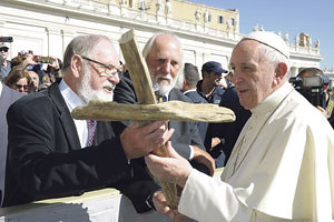 Nach Fußwallfahrt nach Rom überreichten oberösterreichische Pilger dem Papst ein Holzkreuz.