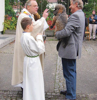 „Ich gehe davon aus, dass es auch für die Tiere schön ist“, glaubt Mag. Dagmar Ruhm, Pfarrassistentin in Braunau-St. Franziskus. Dass Tiersegnungen Herrchen und Frauchen viel Freude bereiten und für gesteckt volle Pfarrkirchen sorgen, steht jedenfalls außer Zweifel. In Braunau gehören die Segnungen der vierbeinigen Freunde zum traditionellen Pfarrleben und auch in Linz-St. Peter schwingt Pfarrer Mag. Franz Zeiger nicht zum ersten Mal den Weihwasserwedel über Bello und Minki. „Die Leute fühlen sich durch die Segnungen in ihrer Tierliebe ernst genommen“, betont Zeiger. Außerdem zeige die Kirche bei den Tiersegnungen ihr sympathisches Gesicht. Biblisch klar belegt sei, dass Gott Menschen und Tieren helfe.
