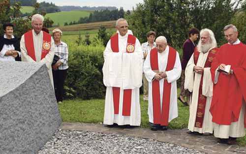Die Feiergemeinde zog anschließend in die Kirche zur Eucharistiefeier. Die Predigt hielt P. August Janisch vom Zisterzienserstift Rein (Stmk.). Der ehemalige „Flüchtlingspfarrer“, Briefbombenopfer Janisch wies auf ein kleines, aber sprechendes Detail in der Biografie des Marianistenpriesters Gapp hin: P. Jakob Gapp hat in einem der Vernehmungsprotokolle mit Jakob Georg Gapp unterschrieben. Auffallend ist, dass Gapp weder mit einem zweiten Vornamen Georg ins Taufbuch eingetragen ist, noch wurde er von seinen Mitbrüdern so genannt. Der heilige Georg wird in der Überlieferung als Drachentöter, als Überwinder des Bösen, bezeichnet. Gapp hat vermutlich mit dem Namen Georg bekundet, dass er den Nationalsozialismus für einen Drachen hält, der schlussendlich aber besiegt werden wird. „Heute heißt es ebenso Mut zeigen, klare Sprache sprechen, handeln und sich nicht einschüchtern lassen“, so Janisch. Als Stadtpfarrer von Hartberg hatte P. August Janisch noch Menschen kennengelernt, die vom Religionsprofessor Jakob Gapp, vor allem von seinem sozialen Engagement für die „ausgesteuerten“ Arbeitslosen in Graz, tief geprägt worden waren. Gapp war von 1934 bis 1938 Religionsprofessor und Jugendseelsorger in Graz. Im Rahmen des Gottesdienstes legte P. Hans Eidenberger sein Amtsversprechen als neuer Regionaloberer der Marianisten für Österreich und Deutschland ab (die KIZ berichtete in der Ausgabe vom 2. Juli 2008).