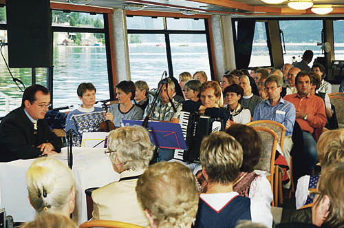 Gmunden. „Wer sich im Boot der Ökumene befindet, der weiß sich getragen vom Element des Wassers.“ So leitete Pfarrer Michael Max aus Neumarkt am Wallersee seine Impulse zur Schifffahrt der Ökumenischen Initiative am 18. Juli auf dem Traunsee ein. Rund 100 Teilnehmer/innen aus den christlichen Kirchen Gmundens waren der Einladung auf das Motorschiff „Karl Eder“ der Traunseeschifffahrt gefolgt und erlebten drei besinnliche Stunden an Bord. Peter Wiegand aus Windischgarsten, ehemaliger Leiter des Bildungshauses Schloss Klaus, beleuchtete die „Seeereignisse in der Bibel“ und zeigte deren Dramatik auf. Das Boot am See Genezareth sei die Kanzel, von der aus Jesus sich den Menschen zugewandt habe.
