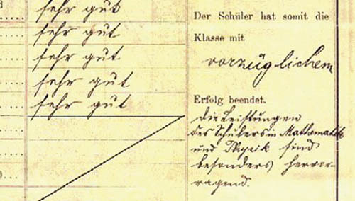 Unsere Frage: Im Ausschnitt oben aus einem Zeugnis aus dem Jahr 1911 findet sich rechts unten eine verbale Beurteilung in Kurrentschrift. Können Sie den Satz lesen?