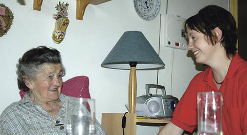 Hilfe bei den Erledigungen. Einmal in der Woche kommt die Krankenschwesternschülerin Barbara Buchmayr für ein oder zwei Stunden auf Besuch. Nach einer Ausbildung durch das Rote Kreuz leistet sie seit einem Jahr Besuchsdienst bei Zäzilia Starzer. Sie unterstützt die 82-Jährige bei den notwendigen Besorgungen, etwa Lebensmitteleinkäufe und hilft mit – neben der Unterstützung der nahen Angehörigen – den Alltag in den eigenen vier Wänden leichter zu bewältigen.