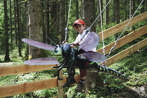 Parallel zur Landesausstellung „Steinsichten in Gosau“ ist in Gosau ein Familienpark entstanden. Die Besucher erleben im „Urzeitwald“ eine Reise durch das Erdaltertum. Hit ist ein Ritt auf dem Flugsaurier.