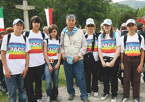 Der ehemalige KZ-Häftling Mario Piccioli mit Jugendlichen aus Prato. Foto: Hörmandinger.