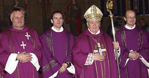 Am 15. Dezember 2007 spendete Diözesanbischof Ludwig Schwarz zwei Kandidaten aus dem Linzer Priesterseminar, Markus Luger (rechts) und Michael Münzner (2. von links), und dem Kandidaten für das Ständige Diakonat Hans Brandecker (links) die Diakonenweihe. In seiner Predigt wies Bischof Schwarz auf Kernpunkte des diakonalen Dienstes hin: die Nachfolge Christi und das Bleiben bei Christus. „Ursprünglich hatte das Wort Nachfolge einen ganz praktischen Sinn: Es meinte, mit Jesus zu gehen. Nachfolge Christi meint also den Beruf des Jüngers, dessen Lebensinhalt das Mitgehen mit dem Meister, das vollständige Sich-Anvertrauen an seine Führung darstellt.“