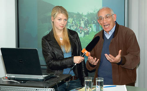 P. Javier Herrán aus Ecuador (mit Dolmetscherin Johanna Neuhauser aus Steyr) hat im Studio des Education Highway in Linz vor Schülern des Fadinger-Gymnasiums referiert. Der Vortrag war auch live im Internet zu sehen und kann dort weiterhin jederzeit abgerufen werden: www.eduhi.at
