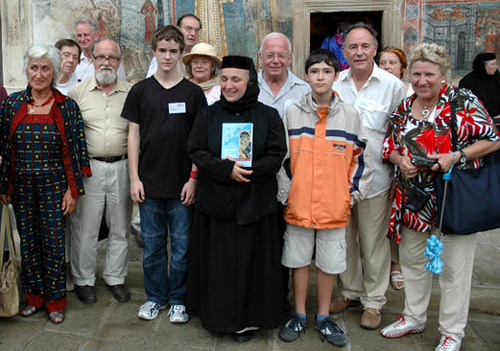 Die rumänisch orthodoxe Nonne Gabriela Platon (Mitte) führte die Gruppe durch das Kloster Voronet. PRO ORIENTE war ihr durch eine Begegnung mit Kardinal König bekannt.
