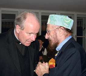 Kardinal Dr. Christoph Schönborn im Gespräch mit Maler Ernst Fuchs, der auch am Podium war. Foto: Land OÖ/Dedl.