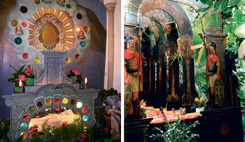 Lauffen und Neukirchen am Walde. Seit dem 10. Jahrhundert werden in den Kirchen Heilige Gräber errichtet. Bis heute gehört das Gebet beim Grab in vielen Pfarren zur Feier der Kartage. In der Pfarre Lauffen befand sich ein Grab aus dem Jahr 1739, das aber so baufällig war, dass es nicht mehr restauriert werden konnte. Auf Initiative von Pfarrer Mag. Richard Czurylo wurde schließlich das Grab originalgetreu nachgebaut und bleibt jeweils bis zum Weißen Sonntag aufgestellt (linkes Bild). Ein kunstgeschichtlich besonders interessantes Heiliges Grab ist – ganzjährig – in Neukirchen am Walde zu sehen (rechts). Vermutlich ist es um 1810 in der örtlichen Tischlerei der Familie Weny entstanden. Im Jahr 1841 – so ist auf dem Giebel des Grabes vermerkt – hat es Anton Weny renoviert. Der Tischlermeister hat sich vor allem durch die kunstfertige Bemalung von Schränken, Truhen und Betten einen Namen gemacht.