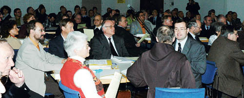 „Veni sancte Spiritus – Komm, Heiliger Geist.“ Mit diesem Lied stimmten sich die rund 200 Delegierten zum Diözesanforum am Samstag, 3. März im Bildungshaus Schloss Puchberg ein. Auch der „menschliche“ Geist war gefordert, sollten doch die Mitglieder der drei diözesanen Räte ihre Eindrücke zu dem wiedergeben, was in Arbeitsgruppen seit Herbst 2006 an Vorschlägen für den künftigen Weg der Kirche in Oberösterreich erarbeitet wurde. In einer Zeit der Spannung zwischen Realität und Illusionen gelte es, den Sendungsauftrag Jesus Christi für die heutige Zeit zu verwirklichen, gab Bischof Dr. Ludwig Schwarz als Aufgabe vor.