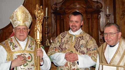 Bischof Maximilian Aichern, Diakon P. Lukas Six und Abt Gotthard Schafelner. Foto: Stift.