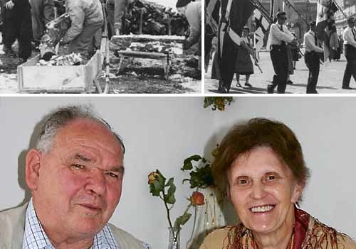 Wahrscheinlich ein Arbeitseinsatz bei der Christophorushütte am Feuerkogel, 1956 (Foto oben links). Links Prälat Johann Weidinger, dritter von links Paul Fellner. An der Rom-Wallfahrt (Bild rechts oben) nahmen 1957 etwa 3.000 junge Menschen aus der Diözese Linz teil. Am 20. Oktober 1962 heirateten Paul Fellner und Gertrude Peneder, die ebenfalls eine Aktivistin der Katholischen Jugend war. Die Familie bezog 1972 in Linz-Kleinmünchen die Wohnung, in der das Ehepaar heute lebt. Bis 1991 arbeitete Paul Fellner als Schichtarbeiter. Fotos: Archiv, KIZ / EG
