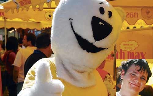 Welser Messe. Ferialjobs in Hülle und Fülle gab es auf der Welser Messe. Besonders beliebt: Promotion-Tätigkeiten. Ein „Naschmax“-Bär (kleines Bild: Florian Strauss, 17 aus Haslach) verteilt Flyer, ein Mädchen verschenkt Schokoriegel. Carola Draxler animiert als „Krone-Girl“ die Messebesucher zur Gewinnspiel-Teilnahme. „In der Pause habe ich mich beim Leiner auf einen Massagesessel gelegt“, sagt die Linzer Gymnasiastin. Kein Wunder: Den Rest des Tages muss sie stehen.