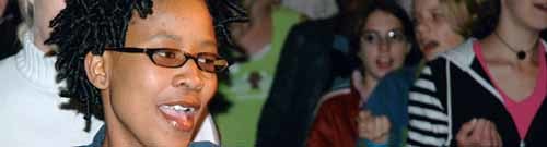 Was für Viktoria beim „Crazy Hairstyle“ zählte, galt allen Teilnehmer/innen als Leitmotiv: der Kreativität freien Lauf lassen. So fanden sich zahlreiche Interessierte beim Workshop einer Gesangs- und Trommelgruppe aus Namibia ein, um später bei der Präsentation mit einer einstudierten Choreografie zu beeindrucken. Nicht weniger beklatscht wurden diverse Rap-Einlagen und die Vorführung einer Tanzgruppe aus Sri Lanka.