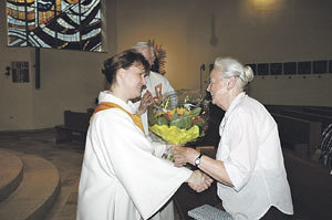 Steyr. Vor 30 Jahren hat Franziska Payrhuber in der Pfarre Steyr-Dietach eine Anbetungsgruppe gegründet. Aus Altersgründen hat sie die Leitung der Gruppe nun zurückgelegt. Pastoralassistentin Anita Aigner bedankte sich im Namen der Pfarre bei Franziska Payrhuber (im Bild rechts), die zudem als eine der ersten Entwicklungshelferinnen aus Oberösterreich lange Zeit in Korea tätig war. Mit Herbst wird die Anbetung in neuer Form jeweils am 3. Freitagabend im Monat fortgeführt.