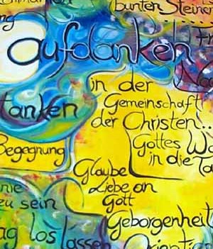 Niederwaldkirchen. Zum diözesanen Jahresthema „aufdanken – Gott in der Zeit des Menschen“ entstand in der Pfarre Niederwaldkirchen dieses beeindruckende Fastentuch. „Wie und auf welche Art ist für Sie die heilige Messe eine Auftankstelle?“ Diese Frage hatte Pfarrer Mag. Karl Arbeithuber bei einer Abendmesse gestellt. Impulse dazu schrieben die Gottesdienstbesucher/innen auf Kärtchen. Anschließend fasste Jungscharleiterin und Künstlerin Ursula Hofer die Antworten nach Themen geordnet zusammen und brachte sie auf das Fastentuch. Von „Bitten, Danken, Beten, Singen“ über „Geborgenheit erfahren“ bis hin zu „In der Gemeinschaft der Christen Gottes Worte in die Tat umsetzen“ reicht die Bandbreite dessen, was die Niederwaldkirchner Pfarrbevölkerung mit „aufdanken“ im Gottesdienst verbindet. Das farbenfrohe Tuch ist noch bis zum Ende der Fastenzeit am Hochaltar in der Pfarrkirche Niederwaldkirchen zu bestaunen.