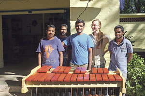 Bestimmt gibt es auch Überraschungen, wenn man in Südindien lebt und arbeitet! Neben Strom- und Wasserausfällen gehören laut Vincent auch ungebetene Gäste zum indischen Alltag: „Auroville ist eine weit verstreute Siedlung mit viel Wald. Da kann es schon vorkommen, dass Schlangen, Skorpione, aber auch weniger schreckliche Tiere, wie Eichhörnchen, zu Besuch kommen“, scherzt Vincent, der in Indien bereits sechs Instrumente gebaut hat.