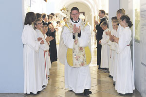 Linzer als Neupriester. Pater Matthäus Kern wurde am vergangenen Sonntag, 3. Juli, in der Stiftskirche Seitenstetten durch Weihbischof Anton Leichtfried zum Priester geweiht. „Hausherr“ Abt Petrus Pilsinger begrüßte viele Ordensleute, Freunde, Verwandte und Gläubige aus der Linzer Heimatpfarre St. Michael. Der 30-jährige Kern kam in Linz zur Welt, absolvierte eine Wirtschaftsschule und trat 2007 in den Benediktinerkonvent ein. Im Herbst wird er als Kaplan in der Pfarre Kematen-Gleiss (Bezirk Amstetten) wirken, außerdem hat er weiter eine halbe Lehrverpflichtung am Stiftsgymnasium Seitenstetten.