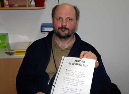 Kreative gesucht./b> Mit seiner meditativen Liedermappe verbindet Nimmerfall kein Gewinndenken. Deshalb ist es auch nicht sein Bestreben, das Werk verlegen zu lassen. „Ich denke eher an Kopien.“ Sollte sich eine kleine Auflage verkaufen, so möchte er den Erlös einem wohltätigen Zweck spenden. Ganz fertig ist die Liedermappe (Arbeitstitel: „Herr, ich glaube“) allerdings noch nicht. Grafisch, farblich und tontechnisch – etwa eine Aufnahme in einem Tonstudio – könne man noch etwas machen, meint Nimmervoll. „Wer Ideen und eine Liebe zu den Liedern hat, möge mit mir Kontakt aufnehmen.“
