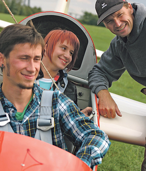 Wie Sperrer zeichnen auch die Segelflugsportler der Union OÖ beeindruckende Inklusions-Initiativen aus. Seit 2009 laden sie einmal im Jahr Jugendliche mit Beeinträchtigungen zum Mitzufliegen ein. Dieser Flugtag ist ein Fest der Schwerlosigkeit, zu dem 40 ehrenamtlich Helfende am Boden und in der Luft beitragen. (Foto mit Obmann Harry Kopecek, rechts).