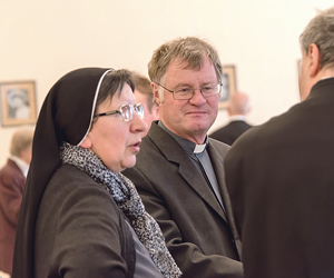 Eine Wanderung von der Kaplaneikirche Kirchberg ins Stift eröffnete den Begegnungsnachmittag mit dem Diözesanbischof. Im Rahmen einer Pastoralkonferenz wurden dann die drei Dekanate Kremsmünster, Pettenbach und Windischgarsten vorgestellt. Das anschließende Gespräch drehte sich um Aufbrüche inner- und außerhalb der Pfarren und um die Armut in der Region. Beim Treffen mit den Hauptamtlichen fiel ebenso wie bei der Begegnung mit den Ehrenamtlichen die Frage: „Wohin steuert die Kirchenleitung? Welche Maßnahmen sind in den nächsten fünf bis zehn Jahren angedacht?“ Bischof Scheuer betonte, dass es schwierig ist, Konzepte zu erstellen, weil die Situation sich so rasch verändert, dass sich Konzepte oft überholen. „Es wird aber dahin gehen, dass Laien verstärkt an der Leitung der Pfarren teilhaben.“ Er hofft auch, dass eine Entbürokratisierung gelingt, weil die Aufrechterhaltung des Systems viele Kräfte und Finanzen bindet. „Hauptamtliche sind zudem durch Erstkommunion, Firmungen und die Anforderungen durch das Kirchenjahr so beschäftigt, dass sie keine Freiräume mehr für anderes haben“, erklärte Bischof Scheuer. Es müsse auch außerhalb der Pfarre Orte kirchlichen und geistlichen Lebens geben. „Hier erlebe ich in der Diözese schon ein gewisses Beharrungsvermögen.“ In seiner Ansprache mit dem Thema „Barmherzigkeit verändert die Welt“ dankte der Bischof allen Haupt- und Ehrenamtlichen für ihren Einsatz.