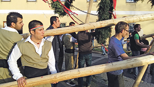 Besondere Unterstützung bekam die Landjugend in Eidenberg (Bezirk Urfahr-Umgebung) beim Aufstellen des Maibaums. Eine Gruppe junger Syrer, die in der Pfarre Linz-St. Peter wohnt, packte mit an. „Damit steht der Eidenberger Maibaum weithin sichtbar als ein unübersehbares Signal für Frieden und Toleranz und als ein Zeichen für ein friedliches Miteinander verschiedener Kulturen und Nationen“, freut sich Franz Zeiger, Pfarrer von Linz-St. Peter. Rund um das Maibaum-Aufstellen gab es ein Fest der Begegnung, das alle mit oberösterreichischen und syrischen Volkstänzen auf der Tanzfläche zusammenbrachte.