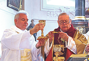 Friedburg: Am 16. April 2016 empfing Martin Muigg (links) in der Wallfahrtskirche Heiligenstatt von Bischof emeritus Ludwig Schwarz die Weihe zum Diakon.