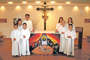 Die Ministrant/innen der Pfarre Reichersberg haben jeweils ein Altartuch für Gründonnerstag und Karfreitag gestaltet.